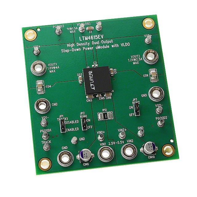 Išsamus aprašymas LTM4615 LTM®, uModule® DC/DC, Step Down with LDO 3, Non-Isolated Outputs Evaluation Board Dabartinis - rezultatas 4A, 2.5A, 1.5A