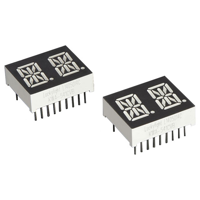 Digit / Alpha dydis 0.54" (13.60mm) Išsamus aprašymas Character LED Display Module Red 14-Segment, Alphanumeric 2 Character Common Cathode 2V 20mA 0.833" H x 0.989" W x 0.303" D (21.15mm x 25.12mm x 7.70mm) 18-DIP (0.600", 15.24mm)