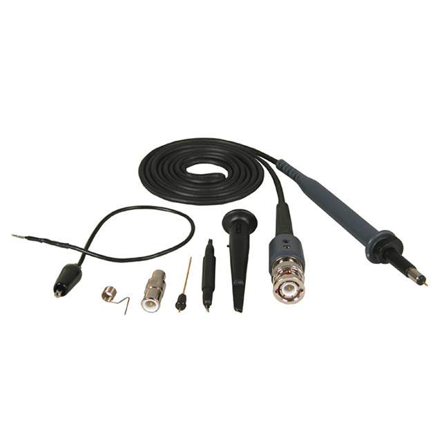 Apima BNC Adapter, Ground Lead, Insulating Tip, Sprung Hook, Rings, Trimmer Tool Išsamus aprašymas 10:1 Passive 500MHz 47.244" (1200.00mm) Black Oscilloscope Probe Test Lead 10M Input Resistance CAT II 300V
