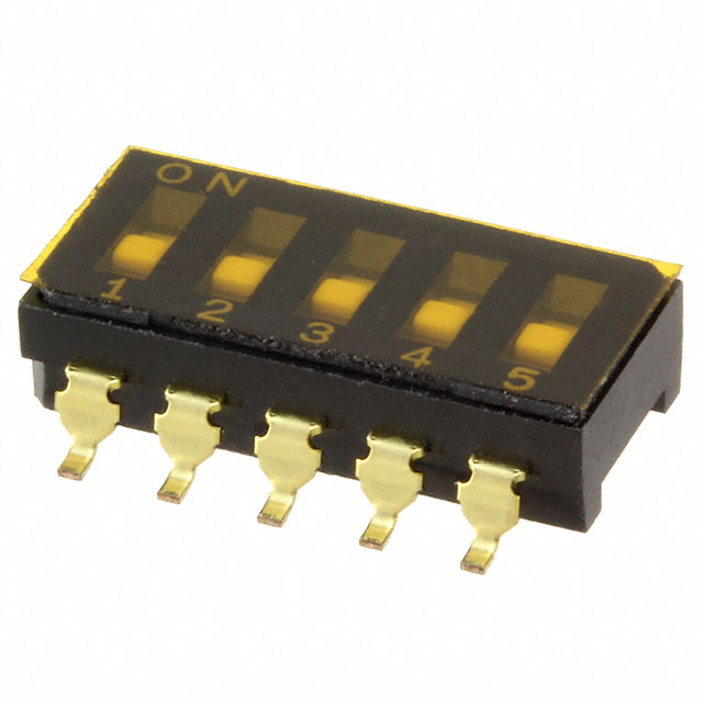 Išsamus aprašymas Dip Switch SPST 5 Position Surface Mount Slide (Standard) Actuator 100mA 6VDC Dabartinis įvertinimas 100mA