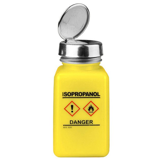 Specifikacijos 6 oz, Dissipative, Includes Pump, Yellow Serija Menda® durAstatic™ One-Touch