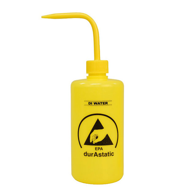 Specifikacijos 8 oz, DI Water Imprint, Dissipative, Includes Spout, Yellow Serija Menda® durAstatic™