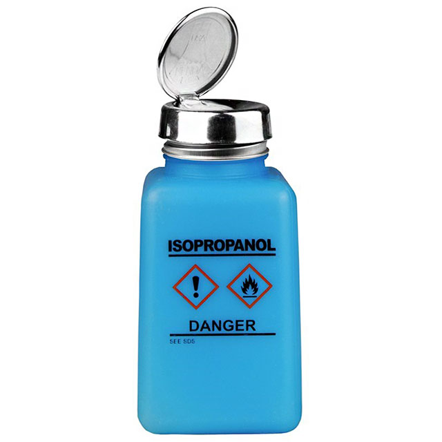 Specifikacijos 6 oz, Blue, Dissipative, Includes Pump, IPA Imprint, Measurement Guide Serija Menda® durAstatic™ One-Touch