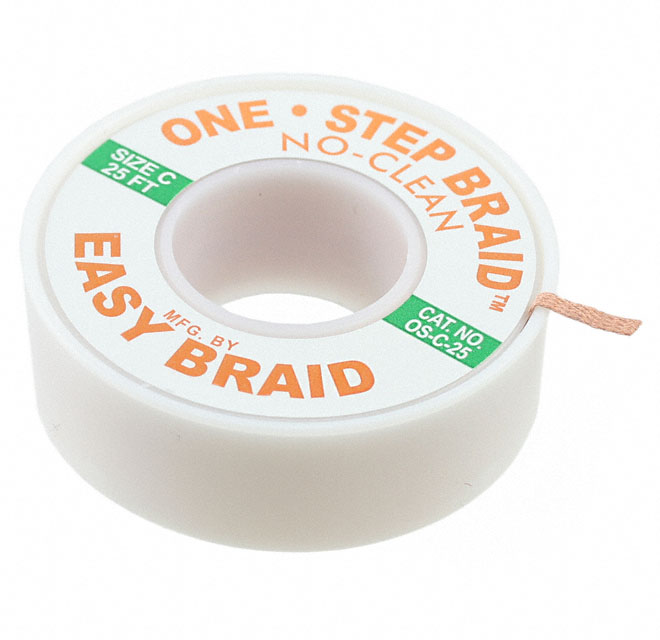 | Išsamus aprašymas | Desolder Braid/Wick No Clean, Rosin, Mildly Activated (RMA) Green 0.075" (1.91mm) 25' (7.62m) | Spalva | Green |