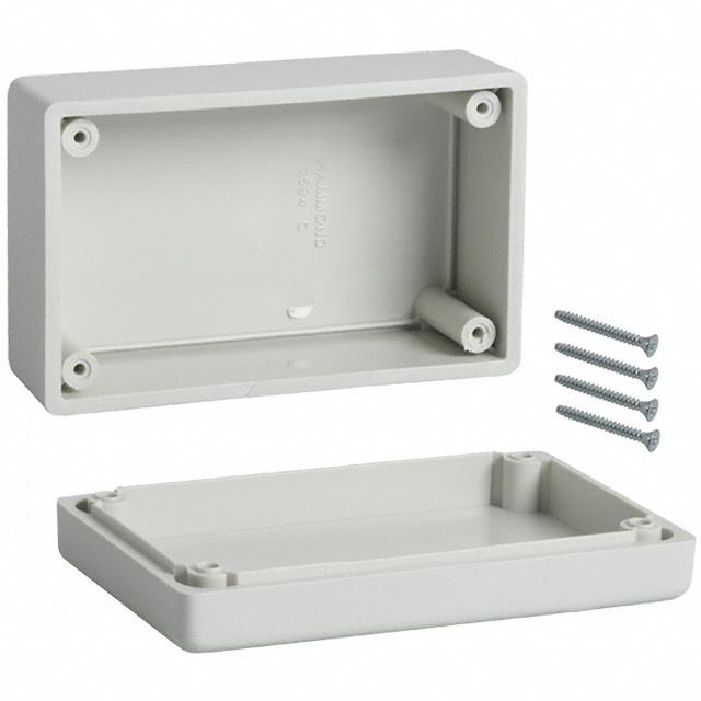 Išsamus aprašymas Box Plastic, ABS Gray Cover Included 4.193" L x 2.598" W (106.50mm x 65.99mm) X 1.787" (45.39mm) Dizainas Cover Included