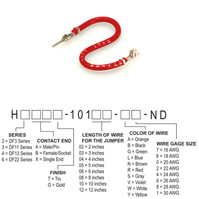 "Lead Free Status / RoHS" statusas Lead free / RoHS Compliant Išsamus aprašymas Red 24 AWG Jumper Lead Pin to Socket Tin 5.00" (127.00mm)