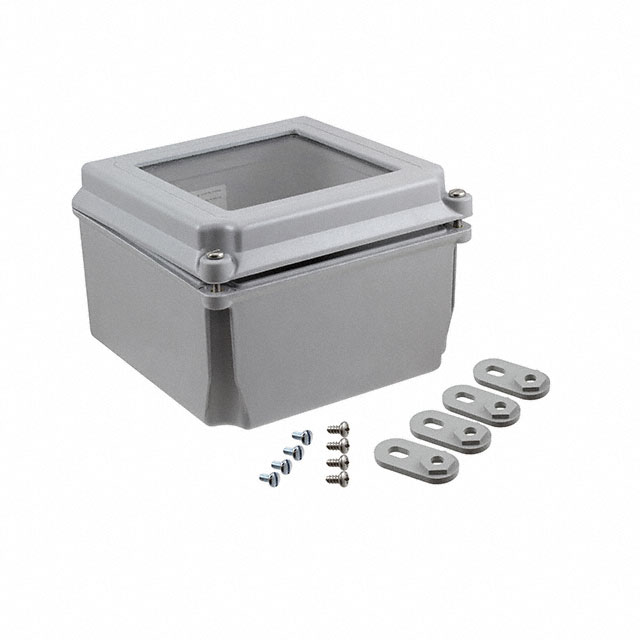 Išsamus aprašymas Junction Box Fiberglass/Polyester Gray Hinged Door, Lid 5.984" L x 5.984" W (152.00mm x 152.00mm) X 4.016" (102.00mm) Dizainas Hinged Door, Lid