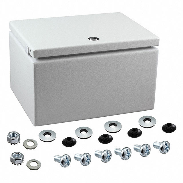 Išsamus aprašymas Box Metal, Steel Gray Hinged Door, Lid 7.874" L x 5.906" W (200.00mm x 150.00mm) X 4.724" (120.00mm) Dizainas Hinged Door, Lid