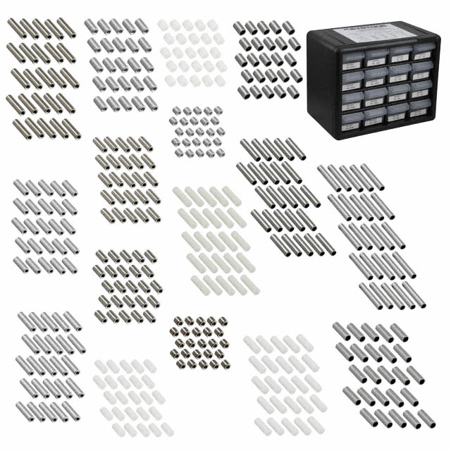 | Vertybės | 400 pcs - 25 ea of 4 sizes in Brass, Aluminum, Nylon, Rolled Aluminum | Serija | - |