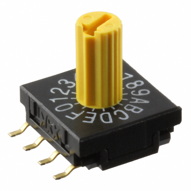 Išsamus aprašymas Dip Switch Hexadecimal Complement 16 Position Surface Mount Rotary with Shaft Actuator 100mA 5VDC Dabartinis įvertinimas 100mA