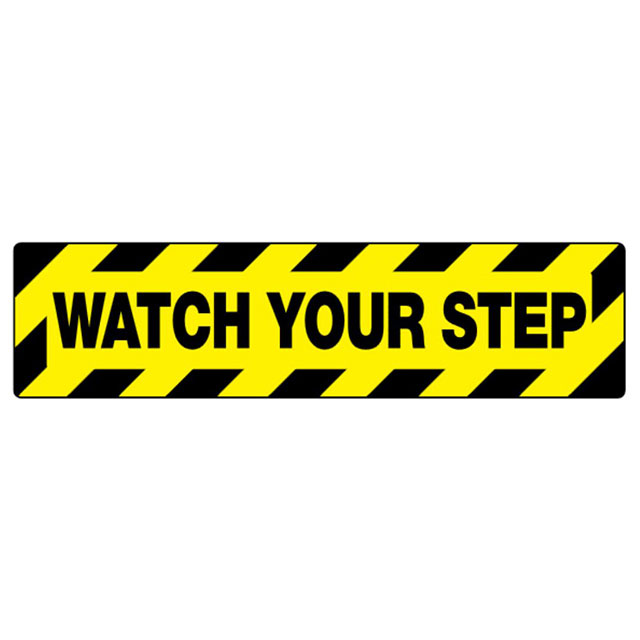 apibūdinimas: SIGN, 6X24, CAUTION STEP DOWN