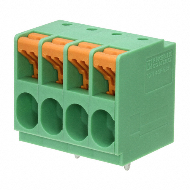 funkcijos Lever Actuated Išsamus aprašymas 4 Position Wire to Board Terminal Block Horizontal with Board 0.250" (6.35mm) Through Hole