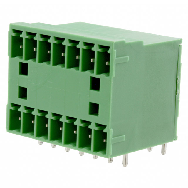 | Išsamus aprašymas | 14 Position Terminal Block Header, Male Pins, Shrouded (4 Side) 0.150" (3.81mm) 90°, Right Angle Through Hole | Dabartinis - UL | 8A |