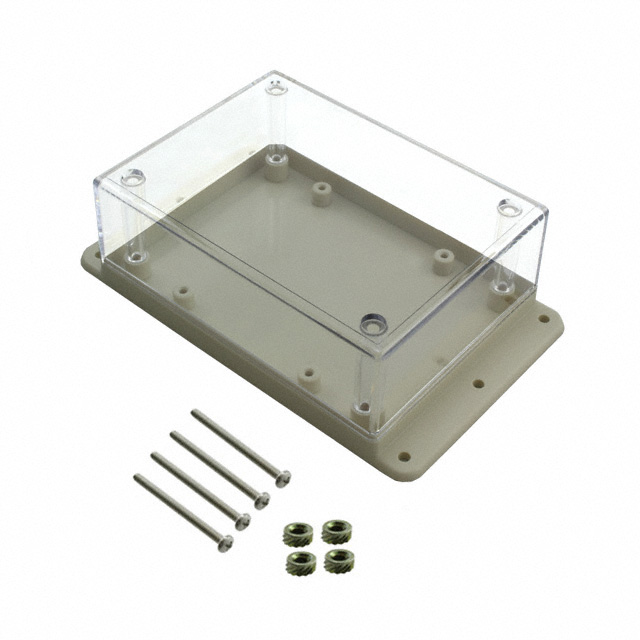 funkcijos Front Access, PCB Supports, Wall Mount Išsamus aprašymas Box with Mounting Flange Plastic, Polycarbonate Almond, Clear Cover/Door Cover Included 4.380" L x 3.250" W (111.25mm x 82.55mm) X 1.600" (40.64mm)