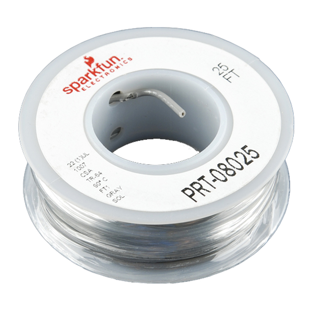 Išsamus aprašymas 22 AWG Hook-Up Wire Solid Gray 25.00' (7.62m) Dirigentas Strand Solid