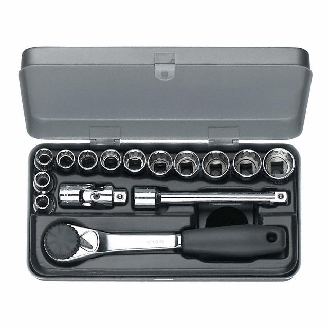 Prekės aprašymas SOCKT SET W/HNDL 12PNT 3/8" 15PC